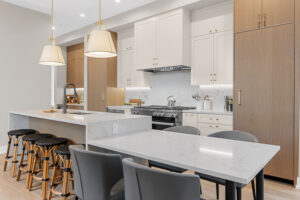 Wolfram Collection_Kitchen: The kitchens in the Wolfram Collection are designed for everyday use and entertaining with built-in Miele refrigerators and freezers, ample storage and center islands with built-in breakfast tables. (Credit Baird & Warner)