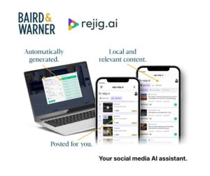 Developed specifically for real estate agents, teams and brokerages, Rejig.AI functions as an AI virtual social media assistant that generates, schedules and publishes branded social content tailored to an individual agent’s neighborhood, market niche, target audience and online personality. Baird & Warner has secured a one-year exclusive agreement with Rejig.AI in the Chicagoland market, which will be rolled out companywide on March 3, offering agents a version of the tool that addresses the specific needs of Baird & Warner agents, with an enhanced integration with MRED-MLS to provide the most up-to-date market and listing information.