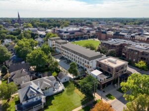MI Homes_Benton+Main_Aerial Rendering: Located on the edge of Naperville’s downtown district, Benton + Main will offer its residents a highly walkable lifestyle with easy access to vibrant shopping and dining options.
