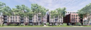 Chapter Mifflin – Pass Thru: Designed by Lamar Johnson Collaborative, the project adds a new pedestrian connection through the site and integrates familiar residential elements — such as porches, balconies and patios — that echo the local context.