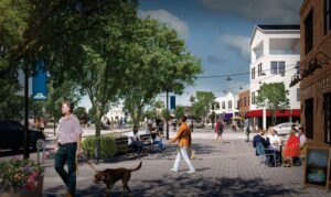 The adjacent 3-acre Village Park will include open space, a beer garden, space for a farmer’s market and various outdoor recreational amenities, such as pickleball courts, playscapes, a splash pad and fishing dock.