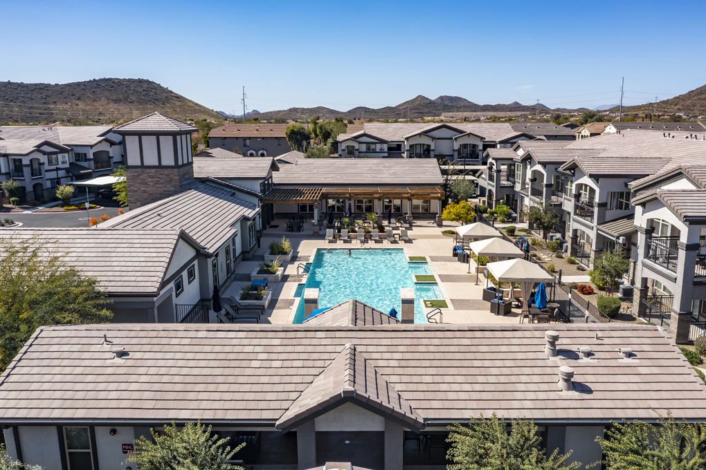 Senita on Cave Creek_Aeriel View: Chicago-based Draper and Kramer, Incorporated, a national full-service real estate firm, has acquired Senita on Cave Creek, a 240-unit luxury living rental community at 23555 N. Desert Peak Parkway in Phoenix