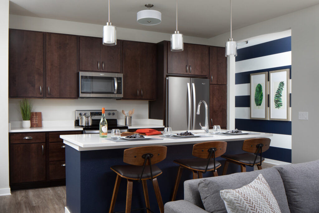 Reserve Randall Road Residence: Unit finishes at Reserve Randall Road include stainless steel appliances, modern carpentry and hardware, 9-foot ceilings, quartz countertops, walk-in closets, plank flooring and in-unit washer and dryer.