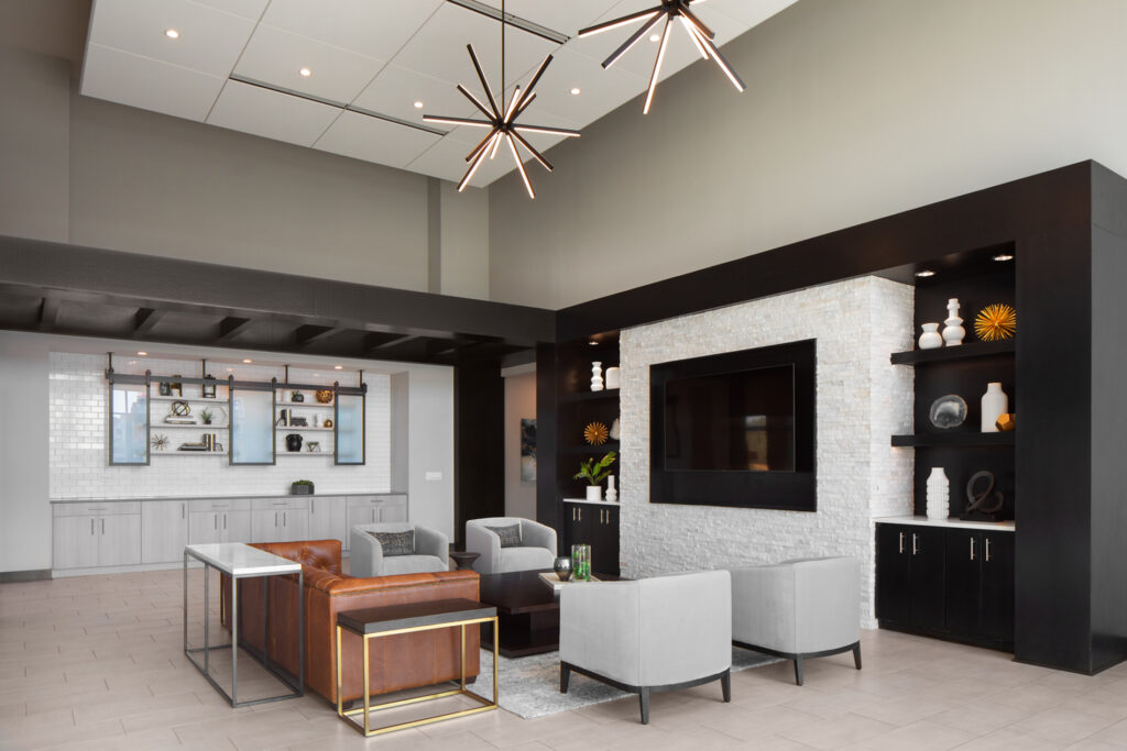 Reserve Randall Road Clubhouse: Reserve Randall Road’s community amenities feature a resort-style pool, gas firepit, grilling station, dog park and a clubhouse that includes a complimentary coffee bar, entertainment lounges and fitness center.