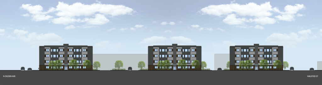 Located on the southeast corner of Halsted and Schiller streets, Schiller Place will include three four-story buildings on an approximately 26,000-square-foot site that is currently vacant. Each four-story building will have 16 apartments, including eight one-bedroom/one-bath and eight two-bedroom/two-bath units.
