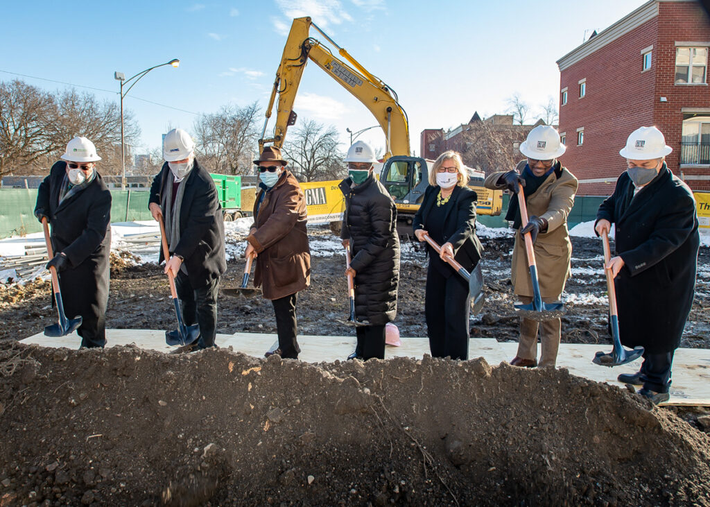 Evergreen and Structured representatives joined 27th Ward Ald. Walter Burnett Jr. and officials from the Chicago Housing Authority (CHA), Illinois Housing Development Authority (IHDA), Hudson Housing Capital, CIBC Bank and other partners at a socially distanced groundbreaking ceremony on Feb. 3.