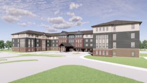 Green Oaks of Canal Winchester Rendering: Evergreen Real Estate Group has started construction on Green Oaks of Canal Winchester, a four-story, 120-unit affordable assisted living community for seniors in Columbus, Ohio, about 12 miles southeast of downtown. (Credit: WJW Architects)