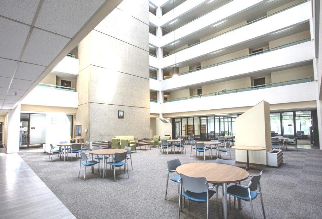 Common areas received new paint, flooring and furniture, with complimentary Wi-Fi installed throughout. In addition, the large lounge area was reconfigured to create dedicated spaces for a library, TV room, kitchen and multi-purpose community room. Elevators were also modernized to operate more efficiently, and the electrical, plumbing and HVAC systems were upgraded and enhanced.