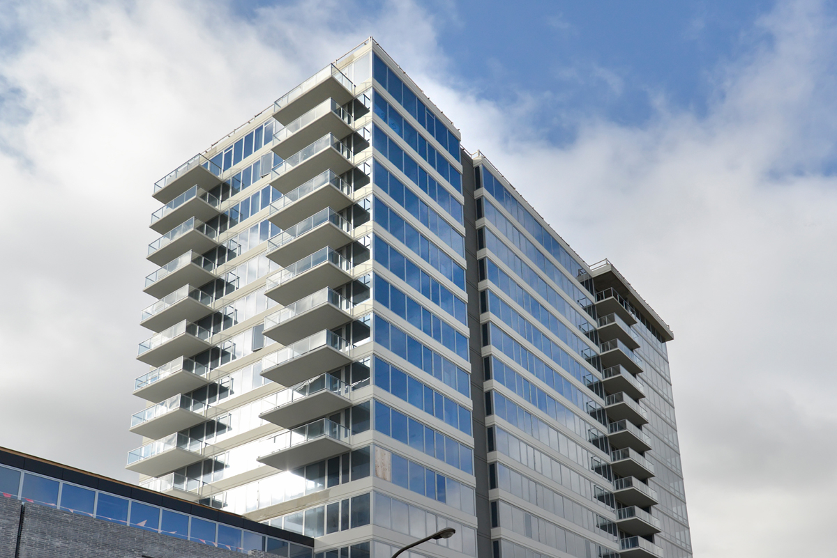 Designed to LEED Silver standards, E2 consists of two buildings, a 16-story tower at 1881 Oak Ave. and a 14-story tower at 1890 Maple Ave. The buildings are connected by a four-story structure with three floors of parking and an amenity deck. At the base of E2 is 4,000 square feet of ground-floor retail space. In addition to its tower residences, E2 also has 12 rental townhomes with private entrances along Emerson Street.