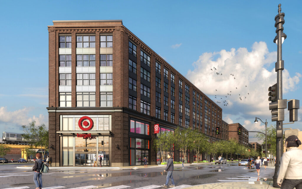 Logan’s Crossing, a new-construction residential and retail community from Fifield Realty Corp. and Terraco Real Estate, will be steps from the CTA Blue Line station and feature 220 apartments and a small-format Target store.
