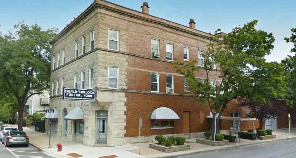 The 10,000-square-foot limestone-fronted building previously housed the Ewald-Barlock Funeral Home, a family-owned business established in 1900 that operated out of the building until it closed last year. The property is located in a vibrant, historically significant area at the intersection of Southport and Altgeld streets — just a short walk from DePaul University.