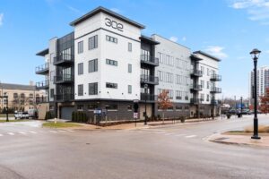 Situated at 302 W. Liberty Drive, Liberty Square Flats is a luxury boutique building constructed in 2024. The property’s 18 two-bedroom units feature private balconies, quartz countertops, smart thermostats, stainless steel appliances, custom closets and in-unit full-size washers and dryers. Building amenities include a rooftop deck, dog washing station, outdoor patio with a grill, storage closets, heated garage parking with EV chargers, surface parking and keyless access.