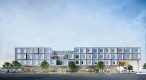 Apartments will include studio, one-, two- and three-bedroom layouts, with 13 units reserved for residents with disabilities. The façade combines textured masonry with colorful metal accents, a nod to the neighborhood’s cultural character, while Passive House elements such as high-efficiency windows, super-insulated walls, rooftop solar panels and energy recovery ventilation help reduce utility costs and improve indoor air quality.