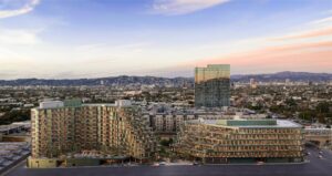 Habitat, which is expected to be net zero carbon in construction and operations, includes an integrated 125kW solar array, 64 dedicated electric vehicle parking spots, 222 secured bike parking spaces, natural ventilation and lower-carbon concrete. In addition to targeting LEED Gold for Habitat’s residential building, Lendlease is aiming to make the commercial building the first new-construction creative office development in Los Angeles to achieve LEED Platinum.