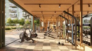 Habitat Residences Fitness Center: Habitat Residences includes an indoor-outdoor fitness center. Credit: The Boundary