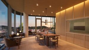 Amenities include an elevated resort-style deck with pool, cabanas, grilling stations and al fresco dining areas. An indoor-outdoor fitness center, coworking lounge with flexible workspaces and social lounge with media room round out the main amenity level. First-floor amenities include a library, lounge with concierge services, pet spa, dog run, dedicated storage and use of Habitat-branded e-bikes. Residents will also have access to a rooftop terrace and dining area.