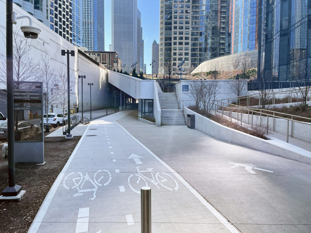 Adjacent developments in Chicago recognized for exceptional facilities that promote active transportation