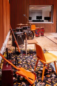 - A professional recording studio and control room available to local artists and students in BandWith’s sound engineering program