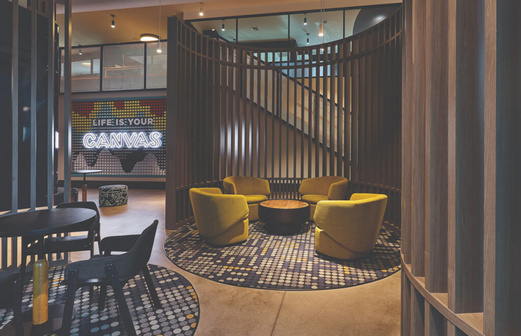 MCA worked with project developer Toll Brothers Campus Living to develop the design concept for CANVAS as well as space plan and program common areas and amenities that foster wellness, creativity, focus and relaxation. The design considered the lifestyle of the project’s college-age residents to offer the type of amenities, technology and opportunities for interpersonal interactions that resonate with Generation Z.