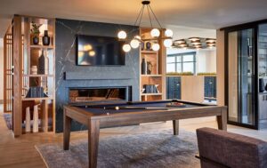 Mary Cook Associates Hathon Medway Club Room: A well-appointed club room with a billiards table is located between Hathon’s lobby, mailroom and combination conference and private dining room. Photo credit: Mary Cook Associates.