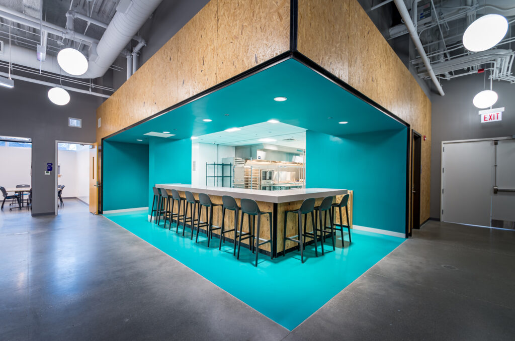 Gately Park Kitchen: A culinary teaching kitchen at the new Indoor Track & Field Facility at Gately Park is part of the After School Matters space, which also includes a dance and exercise studio, performance rooms, a rooftop deck and garden, and multipurpose labs for art, music, science, and technology.