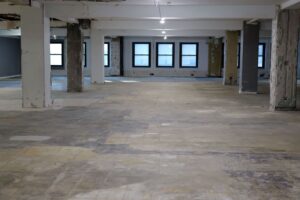 Demolished Floor: Interior demolition is underway at Wacker Place, where McHugh Construction is preparing upper-floor office space for conversion into 252 apartment units designed by Pappageorge Haymes Partners.