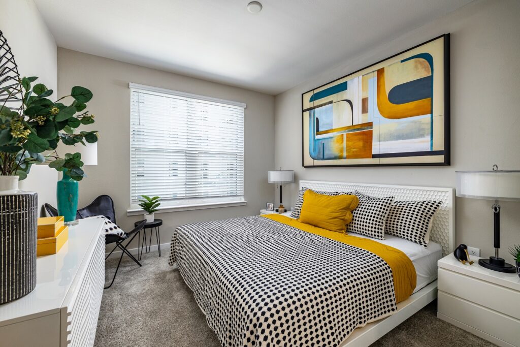 JadeNorthHydePark_Bedroom_Wingspan Development Group: A bedroom at Jade at North Hyde Park, which had a 100-person wait list for tours and now is almost 60% leased.