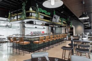 Nicholas Family of Companies Rosemont Ice Arena 4: The rink’s mezzanine level includes a restaurant, called Hatty’s Club, and a viewing area overlooking the two ice rinks.