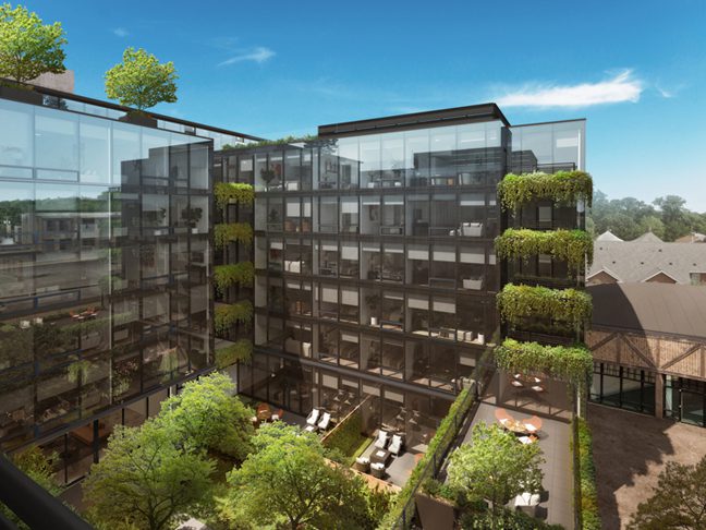 A seventh-floor sky deck, which will open this summer, offers a range of health and wellness amenities including a heated, glass-enclosed lap pool and spa designed for year-round use with retractable glass walls that open onto the sundeck; complimentary pool towel service; a sauna; barbecue grills; two herb gardens; a bocce court; firepits and lounge areas; a party room with chef’s kitchen; residents’ club; and game room.