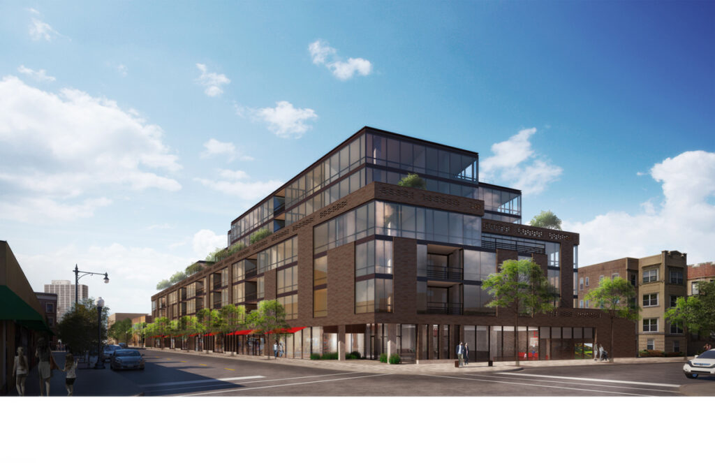 Optima, Inc., a design-driven real estate development firm, has started construction on Optima Lakeview™, a seven-story transit-oriented development (TOD) of 198 apartments with street-level retail in Chicago’s Lakeview neighborhood. Located at 3460 N. Broadway, Optima Lakeview will reinvigorate the neighborhood by replacing a shuttered Treasure Island grocery store and parking lot.