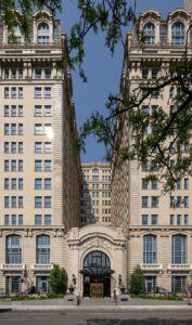The Belden-Stratford_Exterior: Located in Chicago’s Lincoln Park neighborhood, The Belden-Stratford is listed on the National Register of Historic Places and is known for its iconic Beaux-Arts architecture. It was purchased in 2018 by Mansueto Office, which undertook a top-to-bottom restoration and renovation. (Credit: Nicholas James Photography)