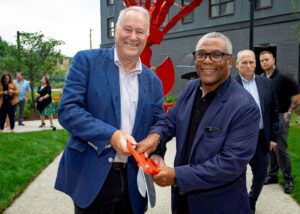Structured Development_Wendelin Park_Mike Drew and Ald. Walter Burnett Jr.: Structured Development Founding Principal Mike Drew and 27th Ward Ald. and Vice Mayor Walter Burnett Jr. cut the ribbon on Wendelin Park, a new mixed-income community situated around a publicly accessible park.