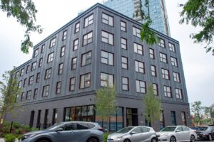 Replacing a former industrial site, the Wendelin Park development comprises three residential buildings oriented around a new publicly accessible park. The master plan includes The Seng, a 34-unit all-affordable condominium building that is the largest of its kind ever built in Chicago, and the newly opened Post Chicago, the city’s largest co-living community, with 431 beds. Foundry, a 27-story, 327-unit market-rate apartment tower, is currently under construction and will open in fourth-quarter 2023.