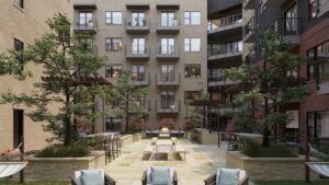 Designed by Austin-based Davies Collaborative, the six-story building features a brick façade at ground level that echoes the Emma’s brick exterior and complements the post-industrial architectural style of the neighborhood. The building offers a mix of studio, one- two- and three-bedroom residences ranging in size from 468 to 1,594 square feet, with market-rate residences starting at $2,002 per month.