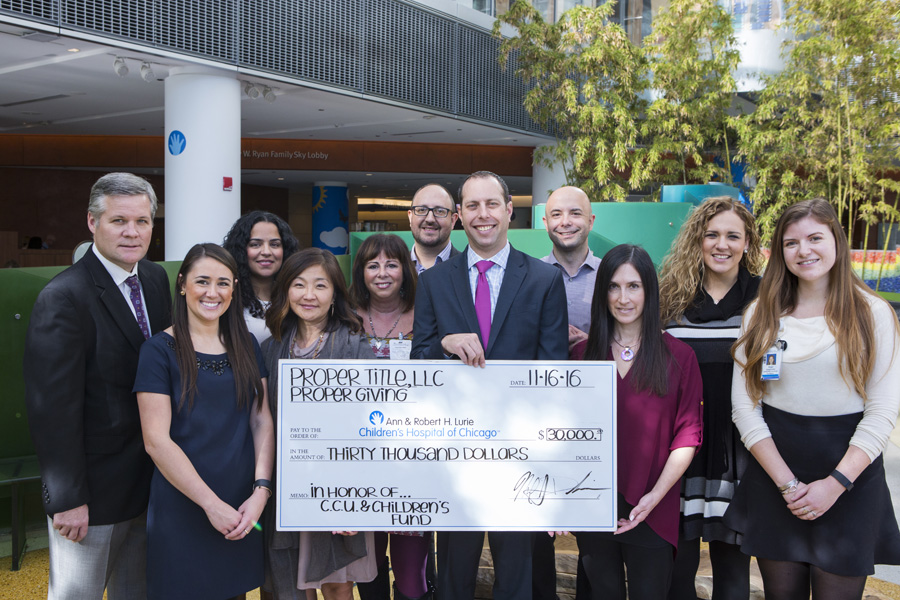 In addition to Proper Giving’s monetary donations to Lurie’s, Proper Title’s employees also volunteer time each month to visit children at the hospital. “Whether it’s money or time, giving to the community is very much a part of Proper Title’s culture,” said Niernberg. “We look forward to continuing the growth of our business as well as our positive impact in the community.”