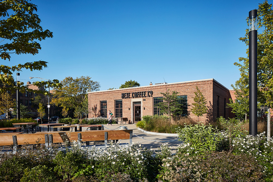 On-site retail is an additional component of Lathrop’s first phase, and Hexe Coffee Co. opened a café in September at the corner of Diversey Parkway and Clybourn Avenue, becoming the community’s first retail tenant. Located in the restored administration building, the Hexe café will feature its barrel-aged specialty coffee, along with local baked goods, sandwiches, charcuterie, craft beers, wine and cocktails. A roastery and wholesaler of specialty and barrel-aged coffees found in restaurants across the city, Hexe’s Lathrop location is the company’s first brick-and-mortar storefront.