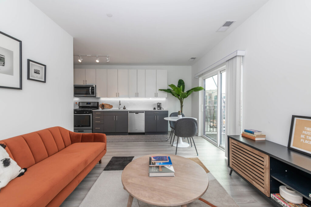 Residences at 10 N. Main in downtown Mount Prospect, Ill., include large custom closets, wide-plank flooring throughout, quartz countertops, in-unit washer and dryer and energy efficient stainless appliances. Most apartments include a balcony or terrace.