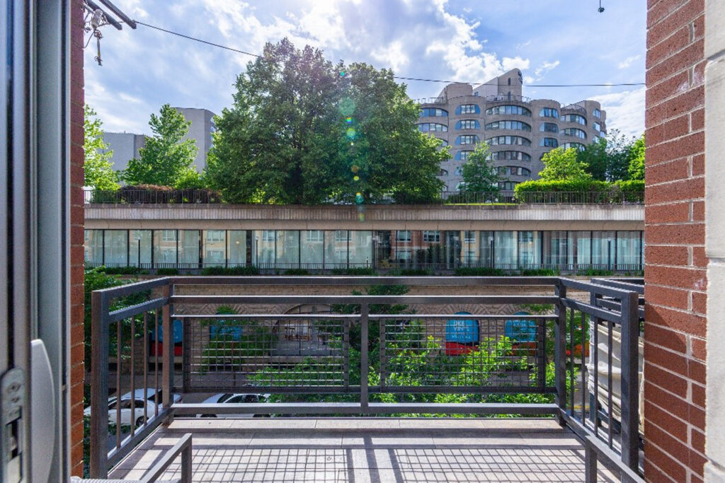 Each residence at Wells Place includes highly sought-after private outdoor space such as this balcony off the kitchen of a two-bedroom unit.