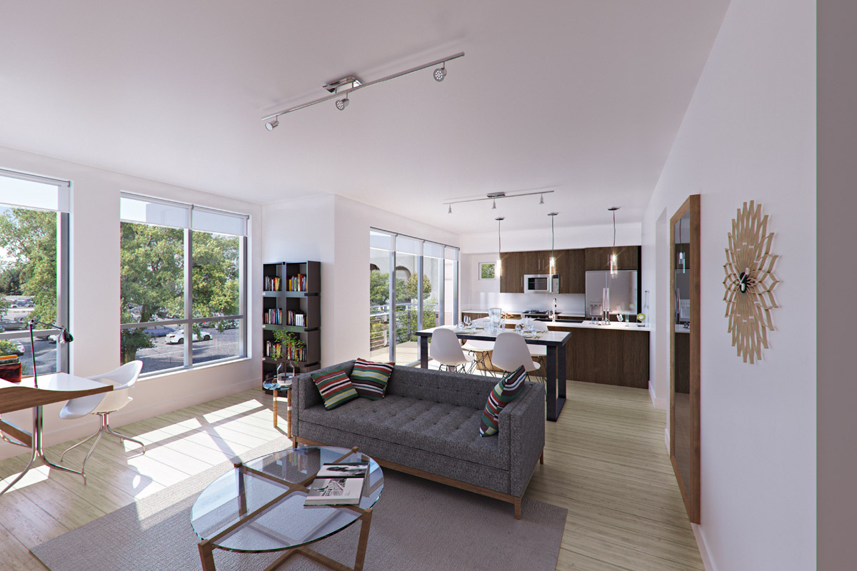 1620 Central will offer one-, two- and three-bedroom apartments, each with private outdoor space. Residences will measure 601 to 1,297 square feet and include stylish finishes such as 9-foot ceilings, quartz countertops, a key fob entry system, luxury plank flooring, modern cabinets and high-end plumbing fixtures.
