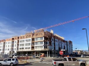 Tempo Nine Mile is a five-story market-rate rental property located adjacent to the future pedestrian bridge that will connect The Point at Nine Mile to the Regional Transportation District (RTD)’s Nine Mile Station and the Cherry Creek Reservoir. Upon completion, the mixed-use building will offer one- to three-bedroom units, ranging in size from 542 to 1,321 square feet, and 3,000 square feet of ground floor retail. The property is highly amenitized, featuring an outdoor pool and landscaped courtyard, community room, bike-ski-kayak room and rooftop fitness center and party deck.