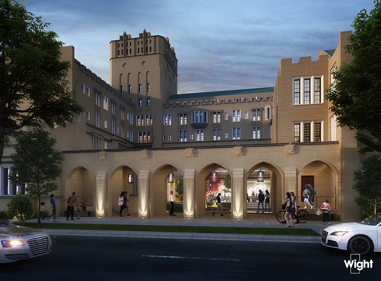 Wight & Company will restore the historic colonnade entrance as part of its design-build project to renovate and expand the University of Chicago Student Wellness Center.