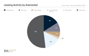“Although Chicago’s office market is still working through a reset, emerging bright spots point toward recovery, not least of which is a return to positive absorption in every CBD submarket,” said Neil Bouhan, senior managing director, research and communications, at Bradford Allen. “While suburban leasing decelerated in the back half of 2025, stable vacancy over three consecutive quarters signals that conditions are slowly but steadily recovering.”